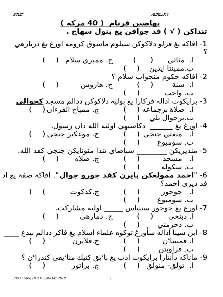 Contoh Soalan Akhlak Tahun 3